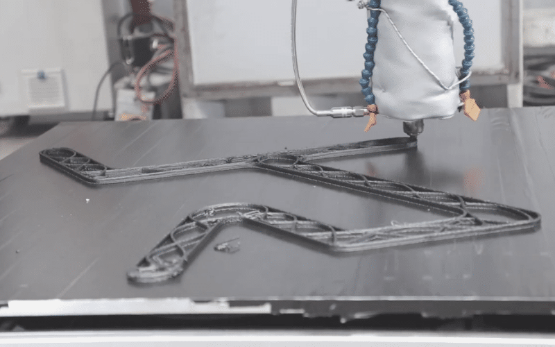 Wir haben das 3D-Werkzeug SEAM zum Drucken großer Kunststoffteile in unsere CNC-Maschinen integriert. Im Vergleich zu filamentbasierten Druckern liefert dieses Verfahren schnell und kostengünstig große Bauteile, die durch die Integration von Verstärkungsfasern industrietauglich sind. Dieses Werkzeug kann in der stationären P-Series und unserer mobilen Maschine verwendet werden. Der Vorteil ist hierbei die Hybridfertigung – additive Fertigung von Kunststoffbauteilen mit zwischen- oder nachgelagertem CNC-Fräsen für den mobilen Einsatz.