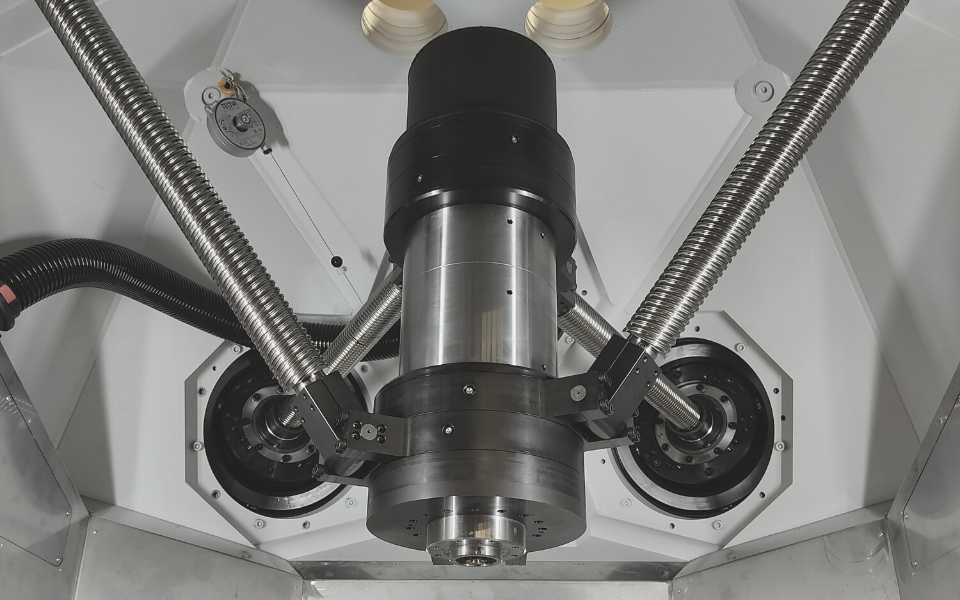 • Fünf Kugelgewindetriebe halten und bewegen die gesamte Spindel in fünf Achsen